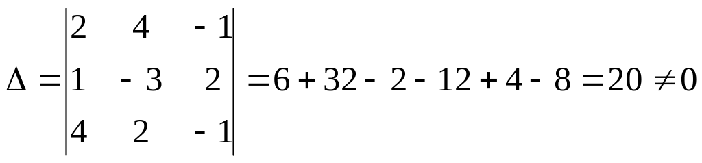 Покажем решение системы линейных алгебраических уравнений методом Крамера.