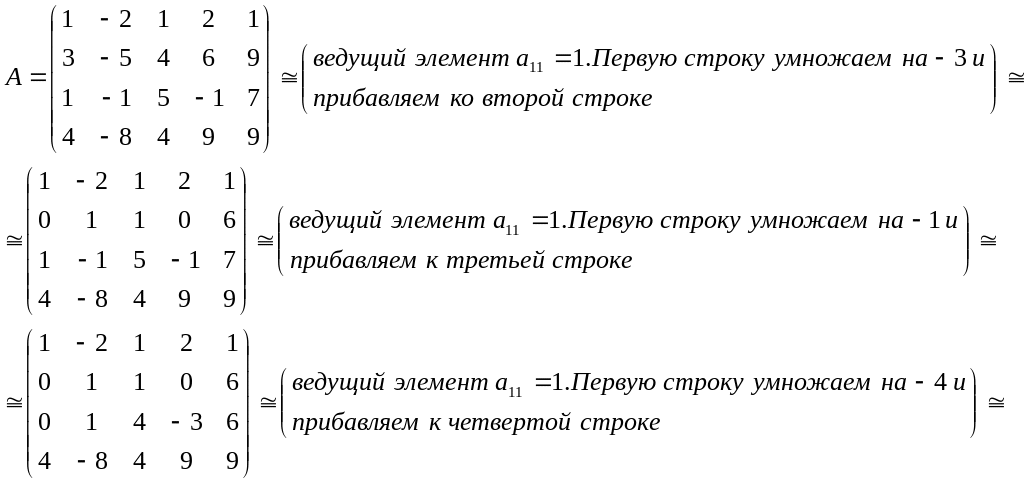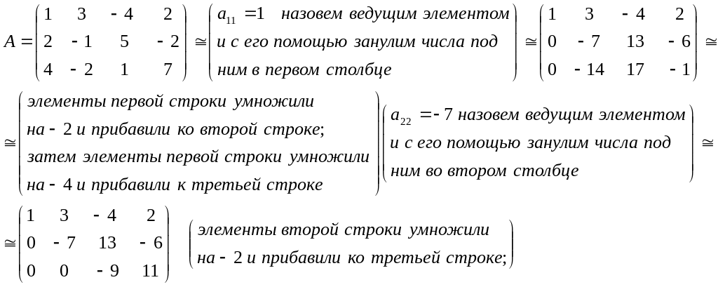 Метод Гаусса состоит в приведении матрицы системы к треугольной или трапециевидной форме.