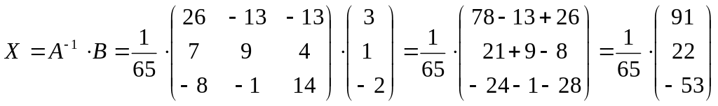 Обратная матрица у нас уже найдена в предыдущем примере, значит можно находить решение: