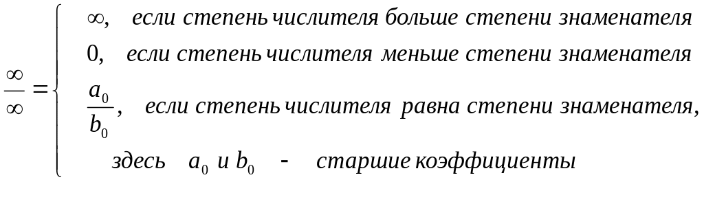 Для раскрытия этой неопределенности достаточно сравнить степени числителя и знаменателя по простому правилу: