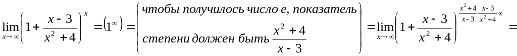Для раскрытия этой неопределенности применяется второй замечательный предел: