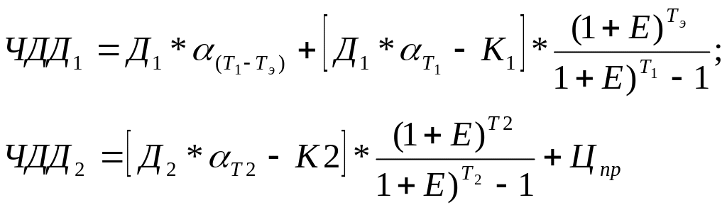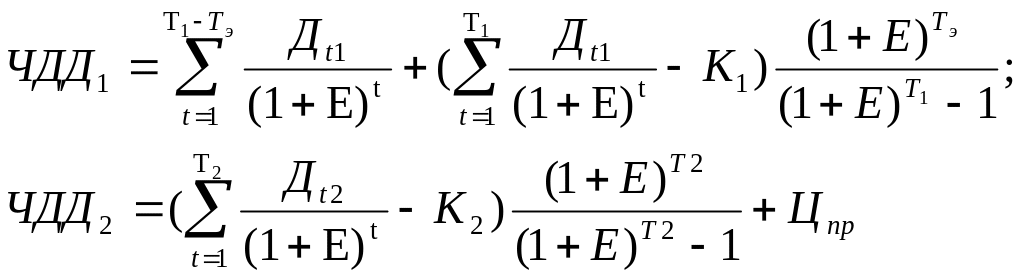Замена оборудования целесообразна при соблюдении условия ЧДД2>ЧДД1.
