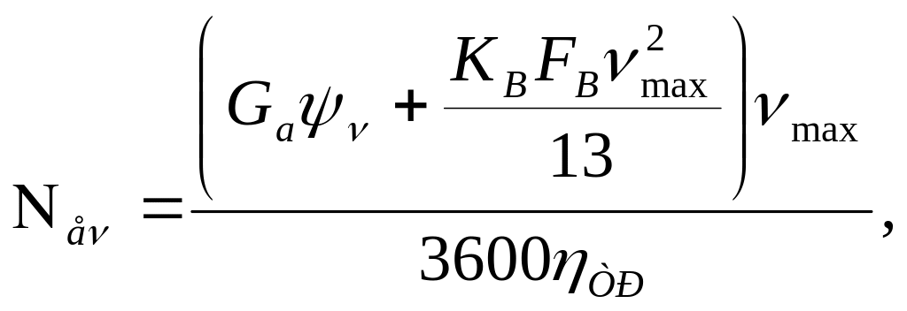 Ең үлкен жылдамдық кезінде автомобильдің үдеуі нольге тең болғандықтан, қуат теңестірімінің теңдеуінен берілген vmax (км/сағ) жылдамдықтағы қозғалысты қамтамасыз ету үшін қозғалтқыштың керекті қуаты Nev (кВт) мына формуламен табылады