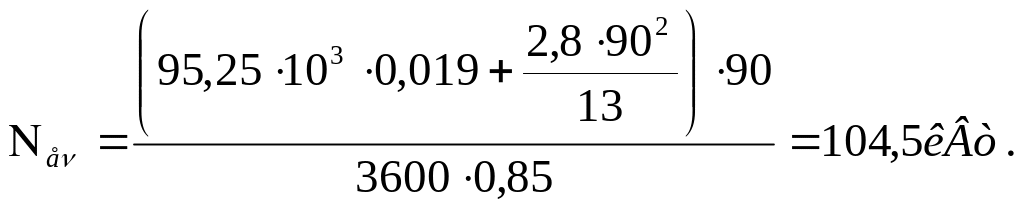 Ең үлкен жылдамдық кезінде автомобильдің үдеуі нольге тең болғандықтан, қуат теңестірімінің теңдеуінен берілген vmax (км/сағ) жылдамдықтағы қозғалысты қамтамасыз ету үшін қозғалтқыштың керекті қуаты Nev (кВт) мына формуламен табылады
