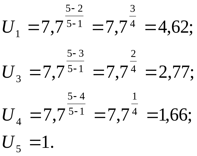 (3.14), (3.15), (3.16) формулалары бойынша есептелген бірінші берілістің беріліс санының шамаларын талдап, біржолата U1=7,7 деп қабылдаймыз.