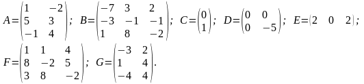 - •Выясните возможно ли выполнить сложение или вычитание матриц и вычислите сумму и разность матриц (если возможно):