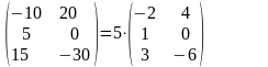 Общий множитель всех элементов матрицы можно выносить за знак матрицы.