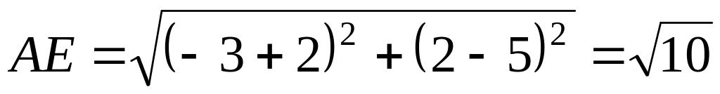 Подставив в правую часть этой формулы числовые значения координат точек А и Е, получим, что