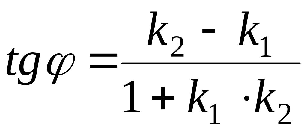 угол , на который надо повернуть в положительном направлении прямую l1 вокруг точки их пересечения до совпадения с прямой l2 находится по формуле: