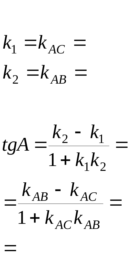 Нахождение тангенса угла между прямыми заданными угловыми коэффициентами