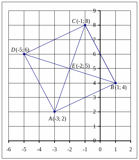 Мы будем считать, что вершины квадрата таковы: B(1; 4); D(-5; 6).