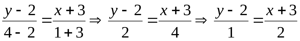 Уравнение прямой AB получим, если в формулу (2) вместо точек M и N возьмем точки A и B: