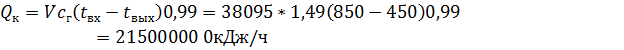 Теплоемкость обжигового газа сг, кДж/ м3 ………………….1,43