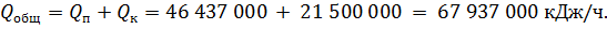 Общее количество используемого тепла (в печи КС и в котле-утилизаторе) составляет [учитывая, что Qп = 46 437 000 кДж/ч (см тепловой баланс)]