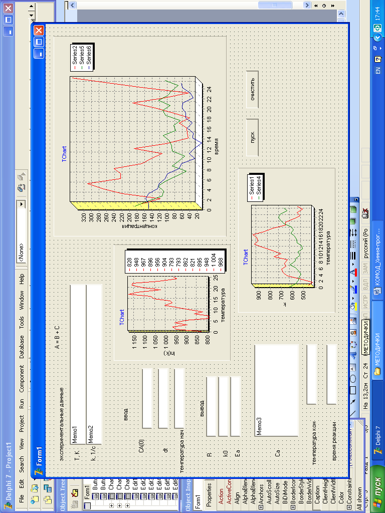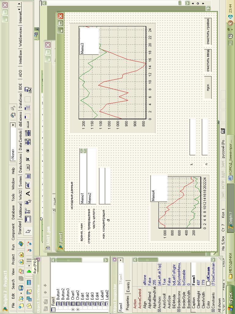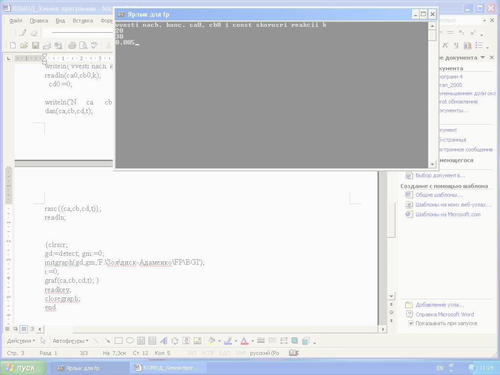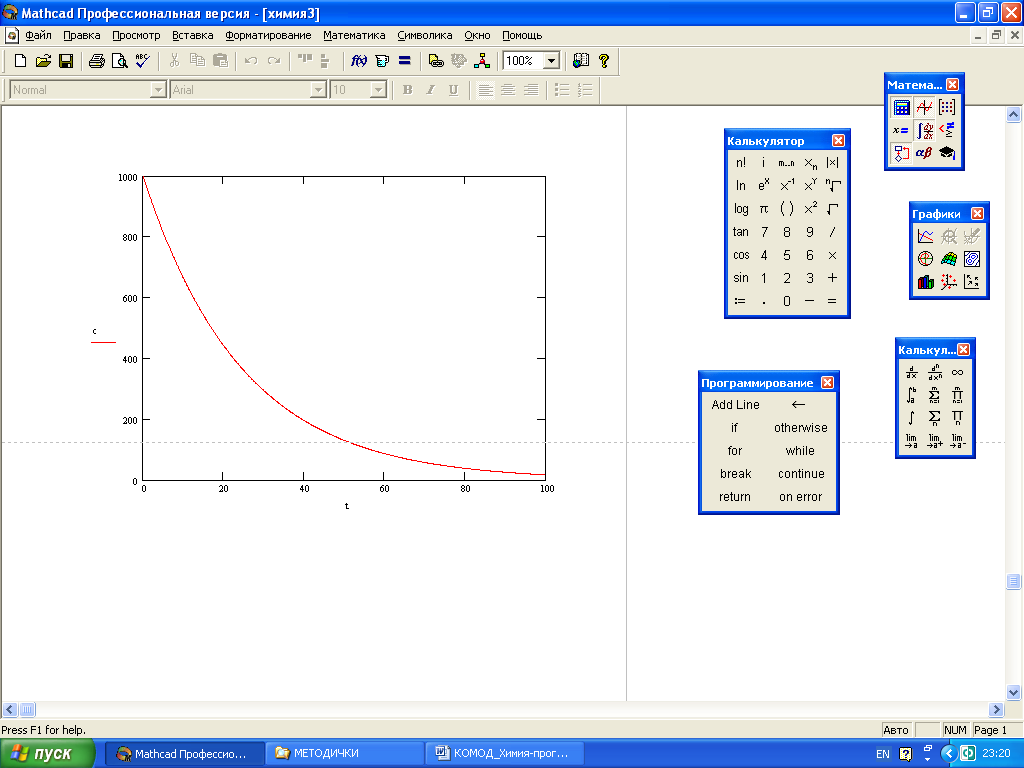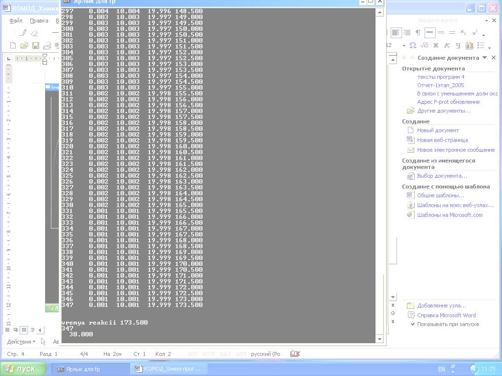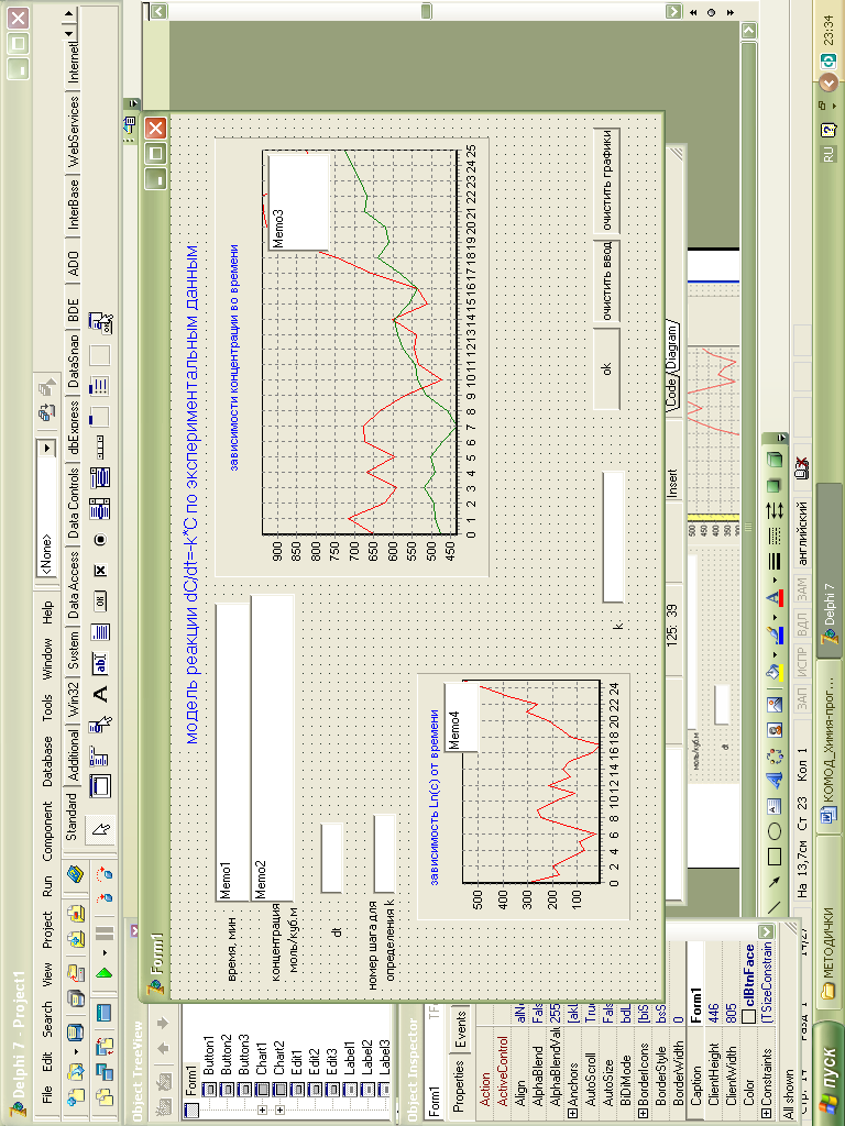 Рис. 28 Окно программы с расчетом константы скорости (k) и порядка реакции (n)