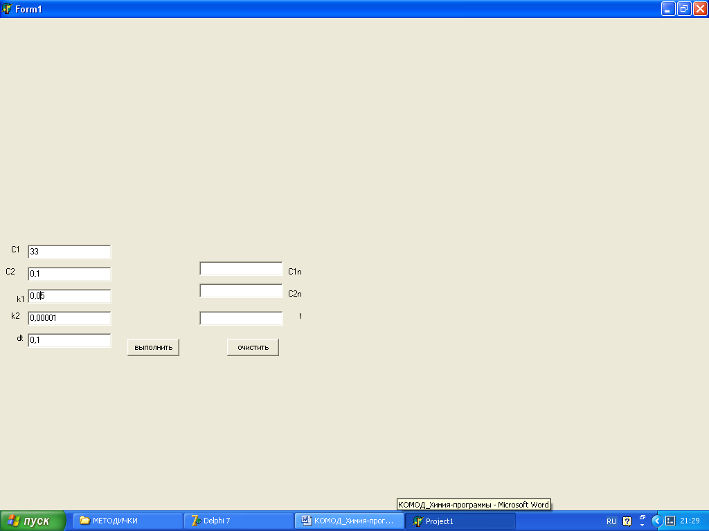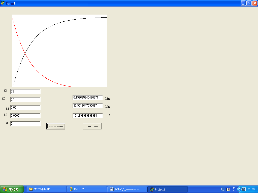 - •Моделирование изотермических реакций, описываемых нелинейными диференциальными уравнениями.