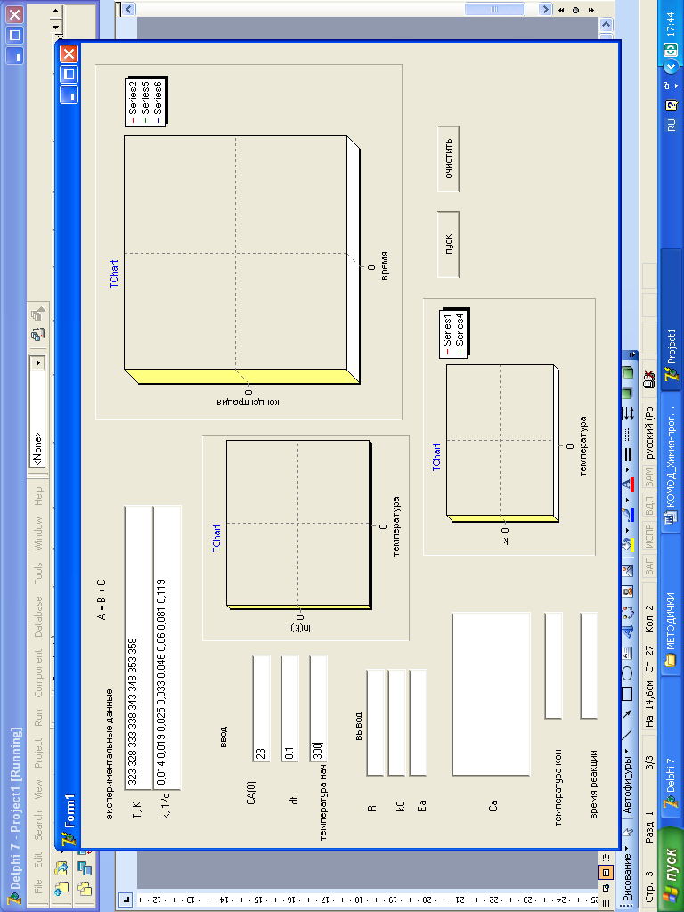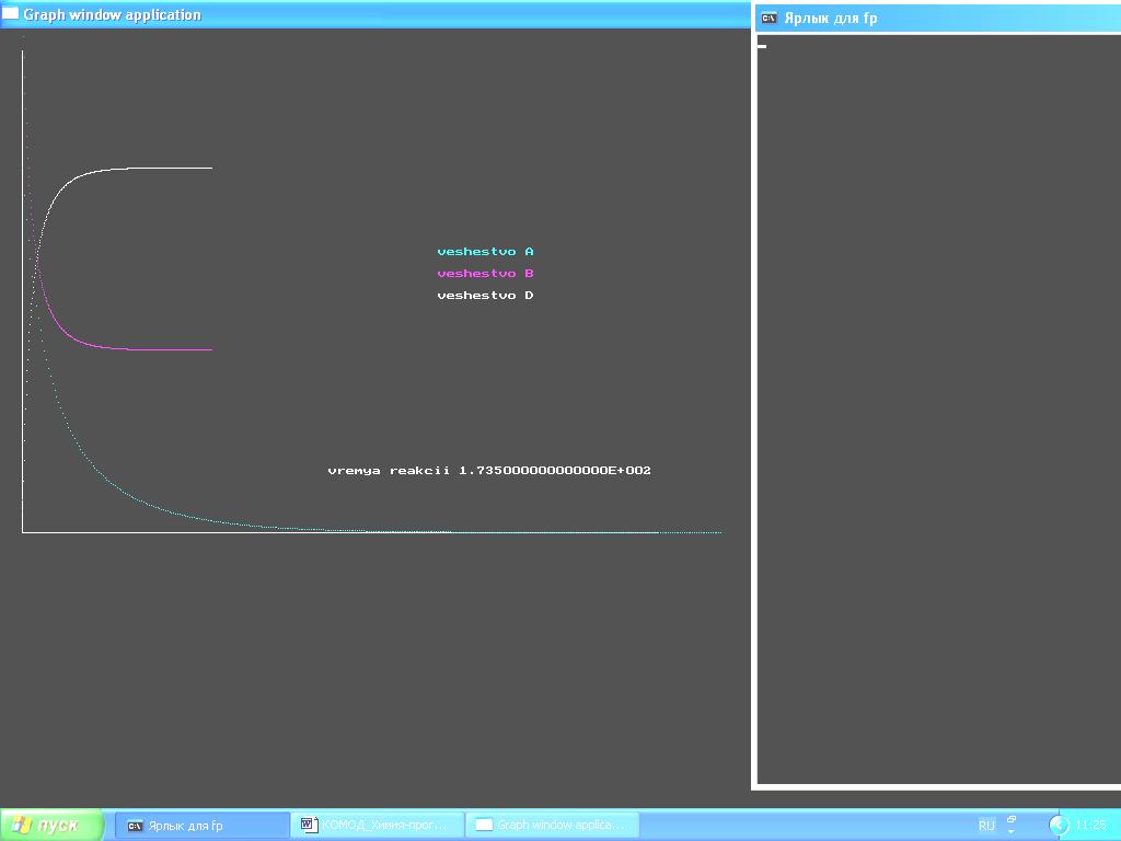 Приходим к простому расчету суммы. Необходимо составить компьютерную программу с использованием данной модели. Условием работы программы, исходя из условия задания, будет обращение в нуль либо компонента А, либо компонента В, т.к. реакция является необратимой.