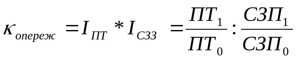 Коэффициент опережения (К оп) характеризует соотношение между темпами роста средней заработной платы и темпами роста производительности труда