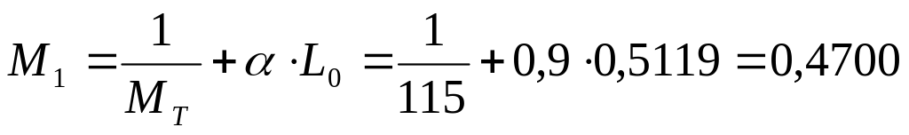 Для случая α < 1 принимаем К = 0,5, (К – отношение числа молей водорода и окиси углерода. При α > 1- К = ∞ ).