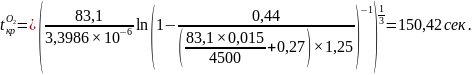 Для одиночного помещения высотой не более 6 м, удовлетворяющего условиям применения интегральной модели, при отсутствии систем противопожарной защиты, влияющих на развитие пожара, допускается определять критические времена по каждому из ОФП с помощью аналитических соотношений:
