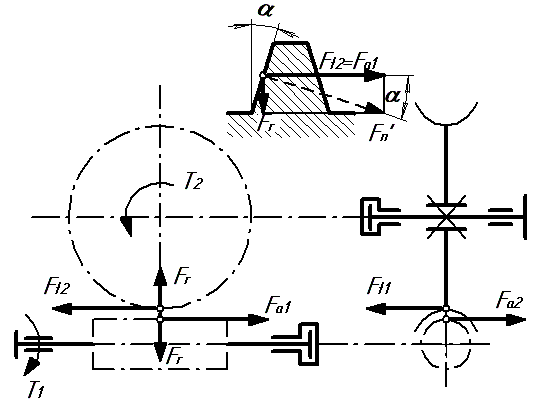 1. Силы в червячном зацеплении.