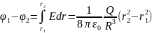 Следовательно, разность потенциалов между двумя точками, лежащими на расстояниях r₁и r₂ от оси заряженного цилиндра (r₁<R , r₂>R), равна