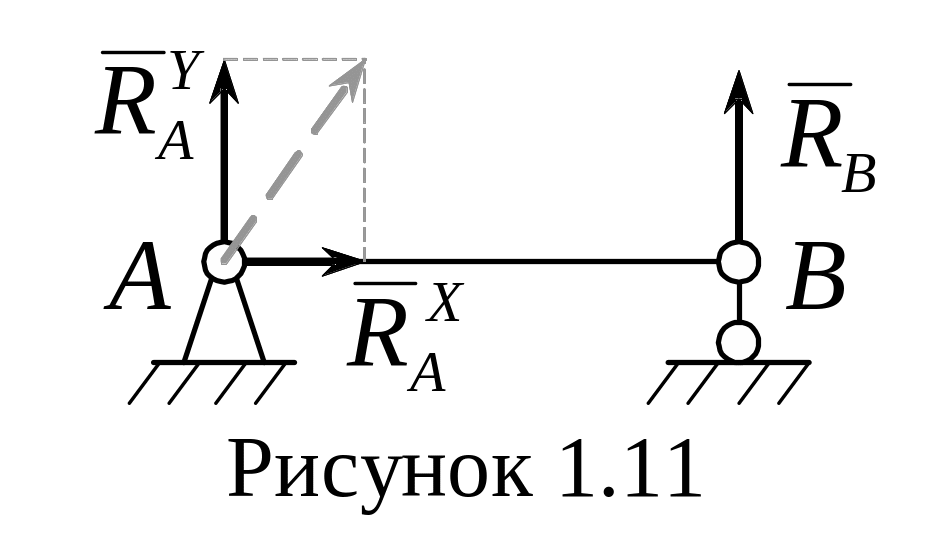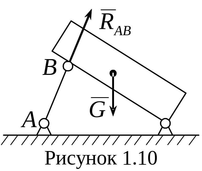 3) Связь, осуществляемая посредством невесомого стержня с шарнирами на концах (рисунок 1.10)