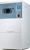 Газовая стерилизация требует специального автоматизированного оборудования (рис. 5) и применяется для обработки оптики, кардиостимуляторов, сложной техники (аппаратов искусственного кровообращения), изделий из полимеров, стекла, металлов, наконечников турбин стоматологических установок. Стерилизующими агентами являются окись этилена или смесь окиси этилена с бромистым метилом, озон, пары раствора формальдегида в этиловом спирте, которыми наполняют стационарные газовые стерилизаторы или портативные анаэростаты. Этот метод значительно более сложный, чем традиционные методы стерилизации паром и горячим воздухом. Необходимо на строго определенном уровне поддерживать температуру, влажность, концентрацию стерилизующего газа, давление и экспозицию, что возможно только при наличии оборудования с автоматическим прохождением цикла. Стерилизация обычно проводится при температуре 42 - 550С в течение 60 - 90 минут. Этиленоксидный метод стерилизации значительно превосходит альтернативные методы в универсальности, экономичности, ремонтопригодности и технической обеспеченности. Стерилизация термолабильных изделий формальдегидом стоит на втором месте после этиленоксида. Оптимальный диапазон температуры при формальдегидной стерилизации 60 - 800С, давление - от 0,25 до 0,475 бар, при концентрации формальдегида от 8 до 15 мг/л. Формальдегид используется в концентрации около 30 мг/л, экспозиция до 60 минут; общая продолжительность цикла составляет 3,5 часа (с учетом дегазации простерилизованных изделий (аэрации). Формальдегидом стерилизуют оптические инструменты, имплантируемые изделия, эндоскопическую аппаратуру. Стерилизованные газом изделия применяют после их выдержки (в течение 1-21 суток) в вентилируемом помещении. Срок сохранения стерильности для изделий в упаковке из полиэтиленовой пленки - 5 лет, пергамента или бумаги 20 суток. Контроль процесса ведут по показаниям приборов.