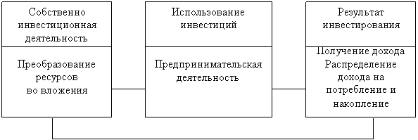 Инвестиционная деятельность является необходимым условием индивидуального кругооборота средств хозяйствующего субъекта. Движение инвестиций, в ходе которого они последовательно проходят все фазы воспроизводства от момента мобилизации инвестиционных ресурсов до получения дохода (эффекта) и возмещения вложенных средств, выступает как кругооборот инвестиций и составляет инвестиционный цикл. Это движение носит постоянно повторяющийся характер, поскольку доход, который образуется в результате вложения инвестиционных ресурсов в объекты предпринимательской деятельности, всякий раз распадается на потребление и накопление, являющееся основой следующего инвестиционного цикла.