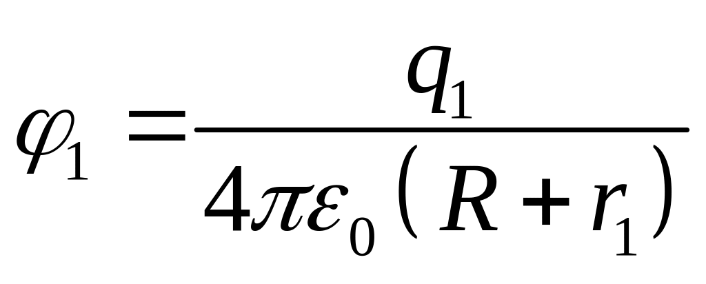 Потенциал результирующего поля, создаваемого двумя зарядами q1 и q2 , равен алгебраической сумме потенциалов, т.е.