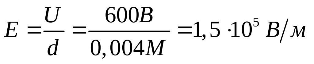 Пример 5. Электрон, обладающий кинетической энергией Т1 = 10 эВ, влетел в однородное электрическое поле с напряженностью Е = 10В/м в направлении поля и прошел в нем расстояние r = 50 см. Определить скорость электрона в конце указанного пути.