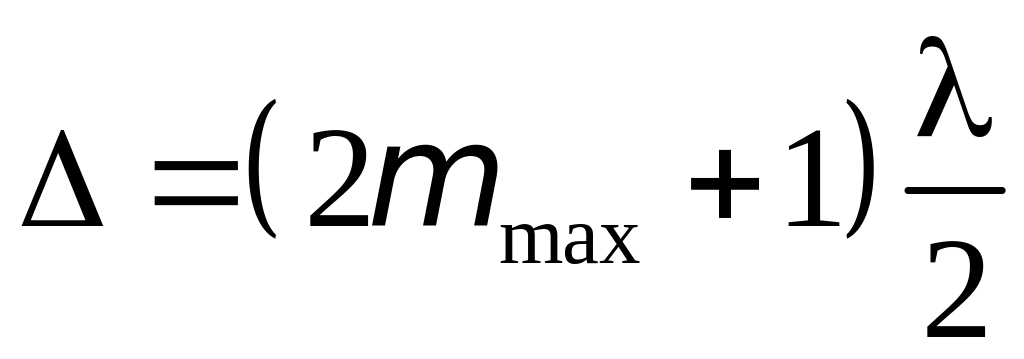 Разность хода волн, формирующих кольцо максимального радиуса, определяется формулой: