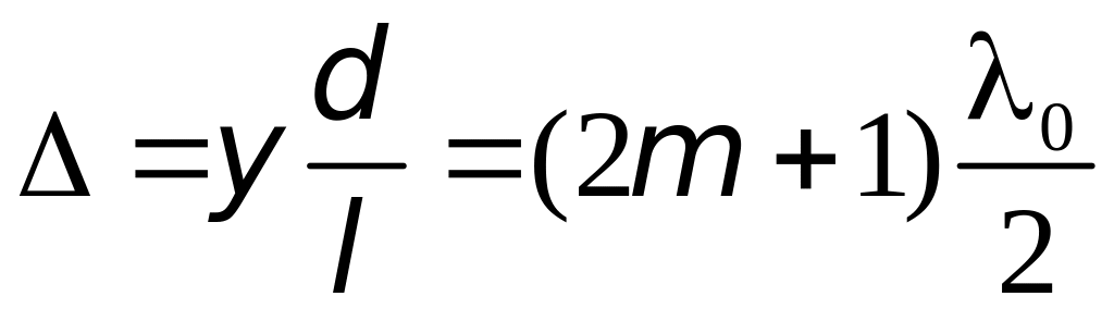 Отсюда следует, что ширина интерференционной полосы определяется выражением: