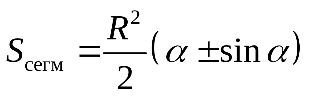 Площа сегмента, що не дорівнює півкругу, обчислюється за формулою: