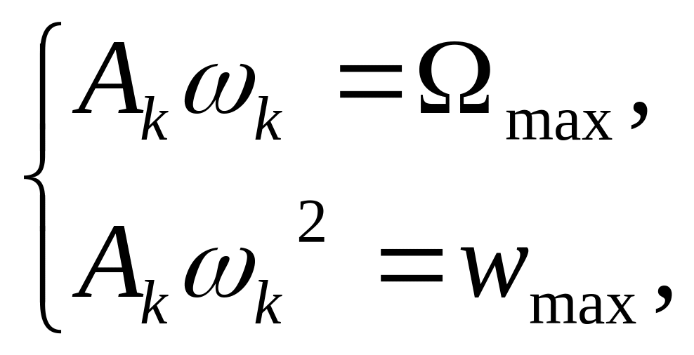 В этом случае определяется режим, при котором амплитуды скорости и ускорения равны максимальным заданным значениям. Пусть входное воздействие изменяется в соответствии с заданным законом