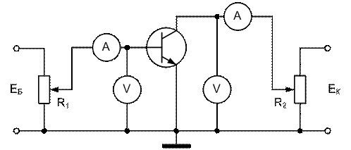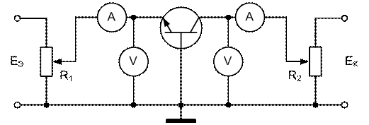 На рисунке 1.2 изображена схема установки для измерения статических характеристик транзистора, включённого по схеме с общим эмиттером.