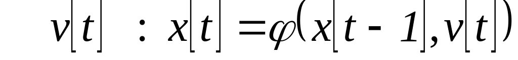 В каждый момент t=0, 1, 2, …дискретного времени КА находится в определенном состоянии x[t] и способен воспринимать на входном канале сигнал v[t], на который он реагирует переходом в [t+1]-м такте в новое состояние x[t+1] и выдачей некоторого выходного сигнала y[t+1] на выходном сигнале.