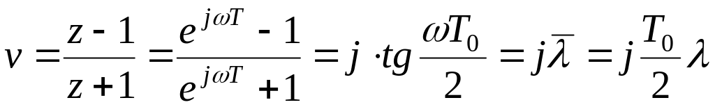 Для преодоления этого затруднения используют билинейное v-преобразование, которое отражает окружность единичного радиуса на мнимую ось комплексной величины v, с помощью подстановки