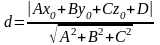 Отметим без доказательства, что расстояние от точки до плоскости, заданной уравнением , находится по формуле