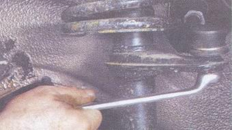 9. Вывожу проушину поворотного кулака из скобы передней стойки.