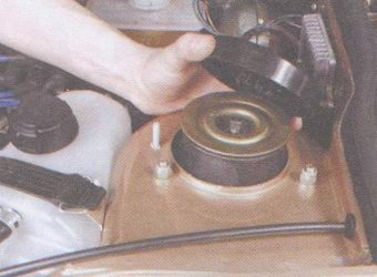 1. Снимаю защитный колпак верхнего крепления передней стойки.