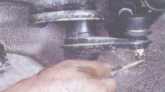 4. Вынимаю шплинт гайки крепления шарового шарнира рулевой тяги к поворотному рычагу.