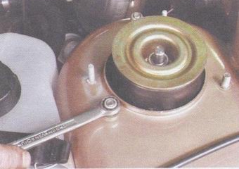 10. Отворачиваю три гайки верхнего крепления передней стойки.