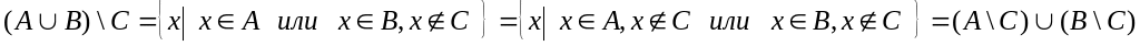 Разность множеств А \ В: А \ B {x : x А , x В}