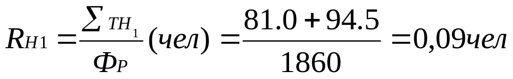 RОБЩ1 = RСТ1+RН1+RТР1= 4,7+0,09+0,13=4,9 (чел)