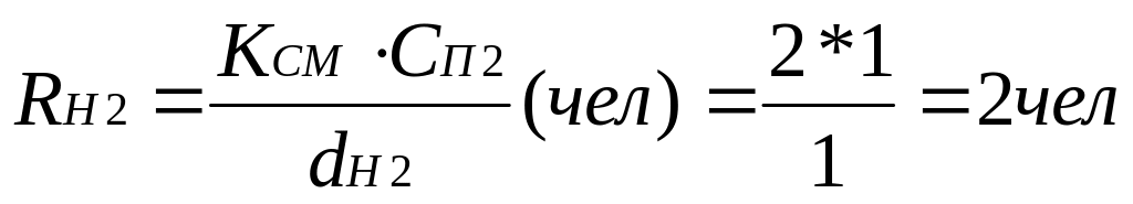 dН2 – количество единиц оборудования, обслуживаемых в смену одним наладчиком. (определяется в разделе 2.5.6);