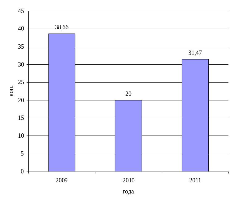 Стоит заметить, что темпы роста себестоимости (53,27%) не превышают темпов роста выручки от продаж (65,45%), однако значительный рост расходов на продажу и резком увеличении затрат на 1 рубль продаж с 20 коп. в 2010г. до 31,47 коп. в 2011 г. (рис. 3), обусловили отрицательную динамику прибыли от продаж, что обуславливает необходимость проведения на предприятии политики по оптимизации затрат.