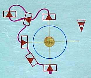 3.Высота 200 метров – выход на траверс. Здесь осуществляется основная проверка – боком к ветру. По возможности уже с этой позиции нужно быть как маятнику привязанным к кругу и «облизывать»его по этому выверенному на траверсе удалению. Рекомендую разворот с 1 проверочной точки на траверс, делать внутренним, так не сбивается ваше ощущение снижения по глиссаде.