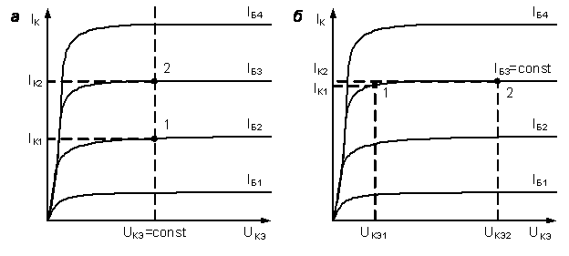 Рисунок - 1.12 Определение h-параметров по выходным характеристикам в схеме с ОЭ: а – параметр h21Э; б – параметр h22Э