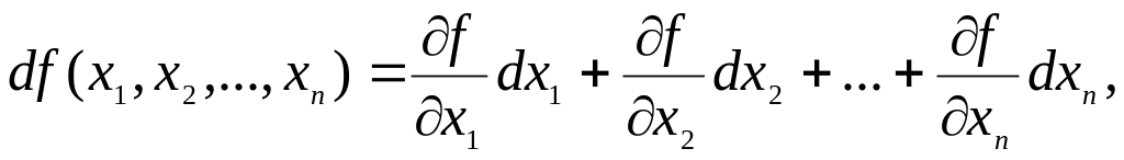 Предыдущие рассуждения и определения соответствующим образом обобщаются на функции любого конечного числа переменных. Например, полный дифференциал функции f(х1, х2, ..., хn) определяется равенством: